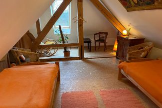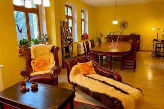 Die besondere Alleinlage des Anwesens, an einem kleinen Waldsee, zwischen Wäldern und weitläufigen Feldern im Nordens Brandenburgs, lädt zum Verweilen und Träumen ein. Die eindrucksvolle Ruhe und die klare Luft bieten die optimalen Bedingungen, um Körper, Geist & Seele in Einklang zu bringen. Pferde, Katzen, Hund und Hühner komplettieren das Bild der ländlichen Idylle. Individuelle Räume, mit Liebe zum Detail, Naturmaterialien und Farbauswahl sorgen für Klarheit, Entspannung, Harmonie und Inspiration. Genieße ein paar Tage gutes vegetarisches saisonales Essen.